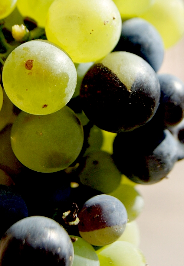 У Франції, серія ТРЕССА досить поширена, це сорт технічного спрямування. Він буває як з білою, так і з чорною ягодою. І ось в сім’ї сортів ТРЕССА був виявлений клон, на рослині якого одночасно формуються грона білого, чорного кольору … І, що найцікавіше, ось грона з чорно-білими ягодами (на фото у збільшеному вигляді можна побчити двохкольорову ягоду). Відрізняється він не тільки кольором, але і смаковими якостями, цукристість ягід теж різна. Цей виноград є виділеним в окремий сорт ТРЕССА Паначчо – в перекладі Тесса двоколірний. Сорт урожайний, грона середньої ваги – до 300 гр. У нього гарне накопичення цукру, зелена ягода набирає його до 25%, чорна – до 22%.