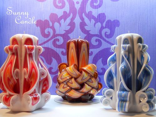 Різьблена свічка неповторна за своїм візерунком і колірною гамою. Складається вона з гніту, серцевини і кольорових шарів.