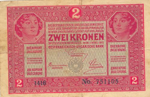Що являла собою крона? Її запроваджено 1892 року замість австрійського гульдена, який українці називали «ринським». Один гульден міняли на дві крони, тож наші люди монету чи банкноту в дві крони далі називали «ринським». А у кроні було 100 гелерів або філерів (так дрібну монету називали угорці). Коли гроші карбували у Відні, на них ставили австрійського двоголового орла, а коли у Будапешті – зображували корону святого Іштвана. Монети більшого номіналу містили портрет імператора. На банкнотах же малювали гарних дівчат і основні написи робили німецькою та угорською мовами, а номінал писали ще чеською, польською, українською, італійською, словенською, хорватською, сербською та румунською – мовами народів, які жили в Австро-Угорській монархії.