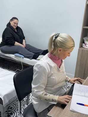 У цьому кабінеті, до речі, лікують й електрофорезом та кріо-й лазеротерапією. А ще тут є ударно-хвильова терапія. Щоби зрозуміти, що це таке, варто уявити собі на хвильку людину з п’ятковою шпорою, яка позбавляє її елементарного – можливості ходити! Чи є вихід? Так, допоможе ударно-хвильова терапія.