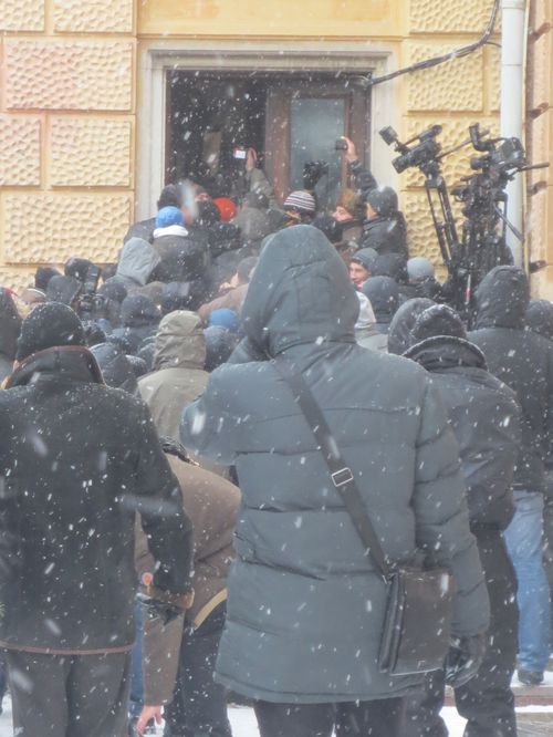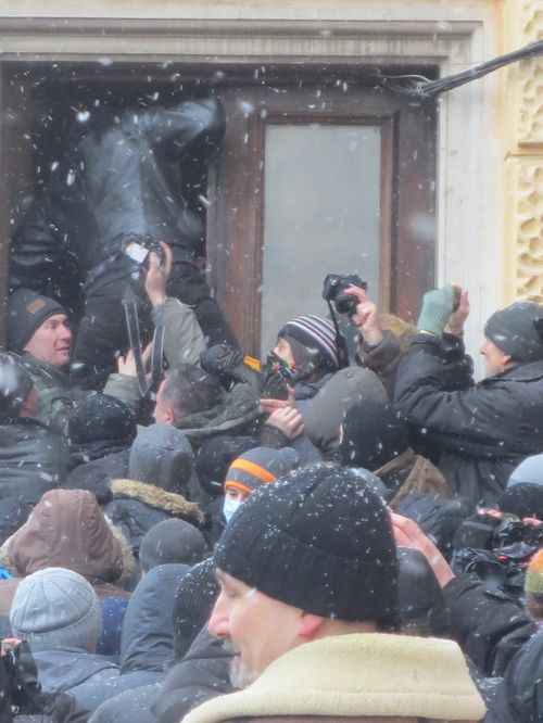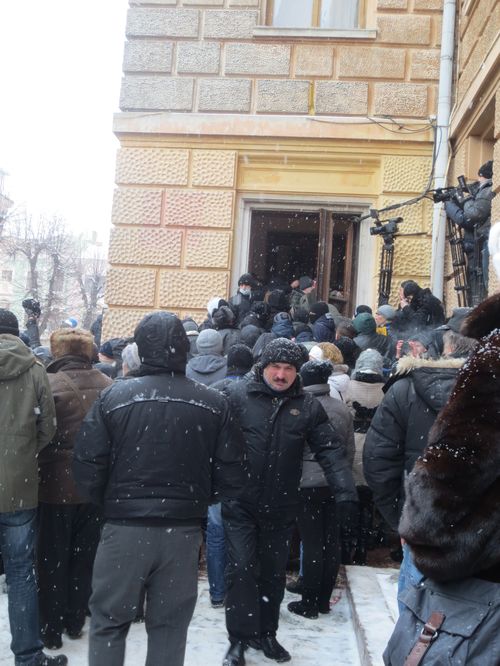 Через 4 часа, когда Черновчане, вот-во,т могли ворваться в здание, руководство ОДА отдало распоряжение забарикодировать входные двери мебелью, взятой из кабинетов и фойе. И, опять же таки, на мои призывы не ломать народное имущество и, что это лишь оттянет на некоторое время финал падения ОДА, да ещё, к тому же приведёт к ещё большей эскалации противостояния и травмам (ранениям) людей с обеих сторон, один из майоров милиции (который знал меня уже несколько лет как активного правозащитника!) постоянно отталкивал меня от строящейся барикады. Мебель таскали и перепуганные чиновники, среди которых находился и выродок Павел Д. Д. (начальник департамента инфраструктуры и архитектуры ОДА). Так вот, этот ублюдок, чувствуя свой скорый конец (до сих пор продолжается уголовное следствие по делу нападения на меня и ограбления Д. Павелом!!!), от страха подпирал своим телом ментов, которые сдерживали натиск протестующих.