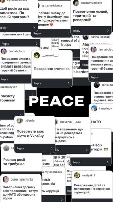 «За останній тиждень обсяг обговорень України в міжнародних медіа зріс втричі, а в соціальних мережах – у 7 разів» – коментує голова BRAND UKRAINE Марія Липяцька. – «На хвилі уваги до українців ми маємо унікальний шанс зробити так, щоби світ почув нас і ці обговорення враховували голос України. Для цього ми ініціювали кампанію #VoicesOfJustPeace у соцмережах і закликаємо всіх небайдужих українців ділитись своїм баченням того, що таке справедливий мир. Жодних дискусій про Україну без України!”
