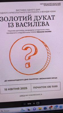 Золото, справді, трапляється, але вкрай рідко. І можливість експонувати знахідки із благородного металу також видається не часто. Тому Чернівецький обласний краєзнавчий музей ласкаво запрошує на виставку одного експоната – золотого дуката з Василева.