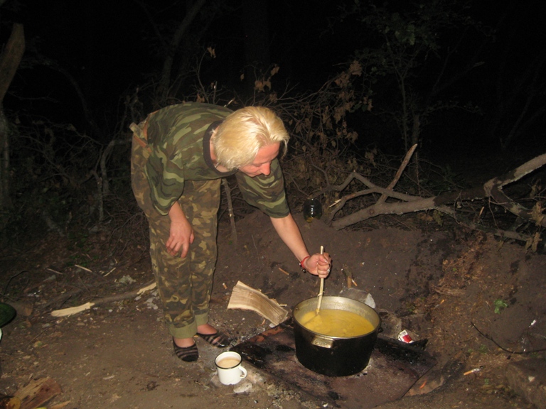 Отже, я попросила хлопців розпалити багаття. Інші солдати цього часу пішли діставати сало, кукурудзяне борошно, бринзу, цибулю… Оскільки на вогні поміщалася тільки одна посудина, довелося усе робити поетапно.