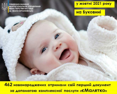 На Буковині у жовтні 462 новонароджених отримали свій перший документ за допомогою комплексної послуги «єМалятко»