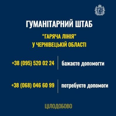У Чернівецькій області розпочав роботу цілодобовий гуманітарний штаб.