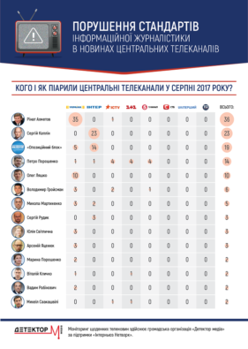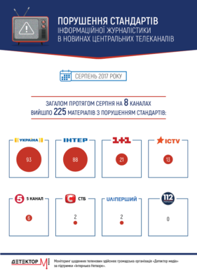 Телеканали “Україна” та “Інтер” протягом серпня випустили 181 сумнівний сюжет.