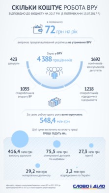 І за це протягом 2018-го витратять 416,4 млн грн: зарплати для 423 депутатів, 1692 помічників, 1055 співробітників апарату і 1218 працівників підвідомчих установ – понад 4 тис. осіб отримають десь по півмільйона за рік. «Армія», що й казати, чимала.