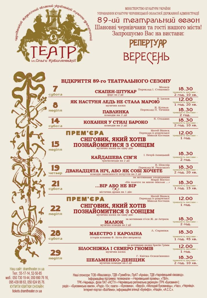 Очільники театру поділилися творчими планами з журналістами та розповіли про турботи повсякденного життя театру. Ще у міжсезоння, до Дня Незалежності України в театрі показали безкоштовно виставу «Трагедія бунту». Власну інсценізацію за мотивами роману Панаса Мирного «Хіба ревуть воли, як ясла повні?» здійснив заслужений діяч мистецтв Петро Колісник. А новий театральний […]