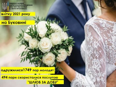 Влітку на Буковині одружилися 1749 пар молодят, з них 494, скористались послугою «Шлюб за добу». Іншими словами, вони зареєстрували  шлюб за одну однісіньку добу.