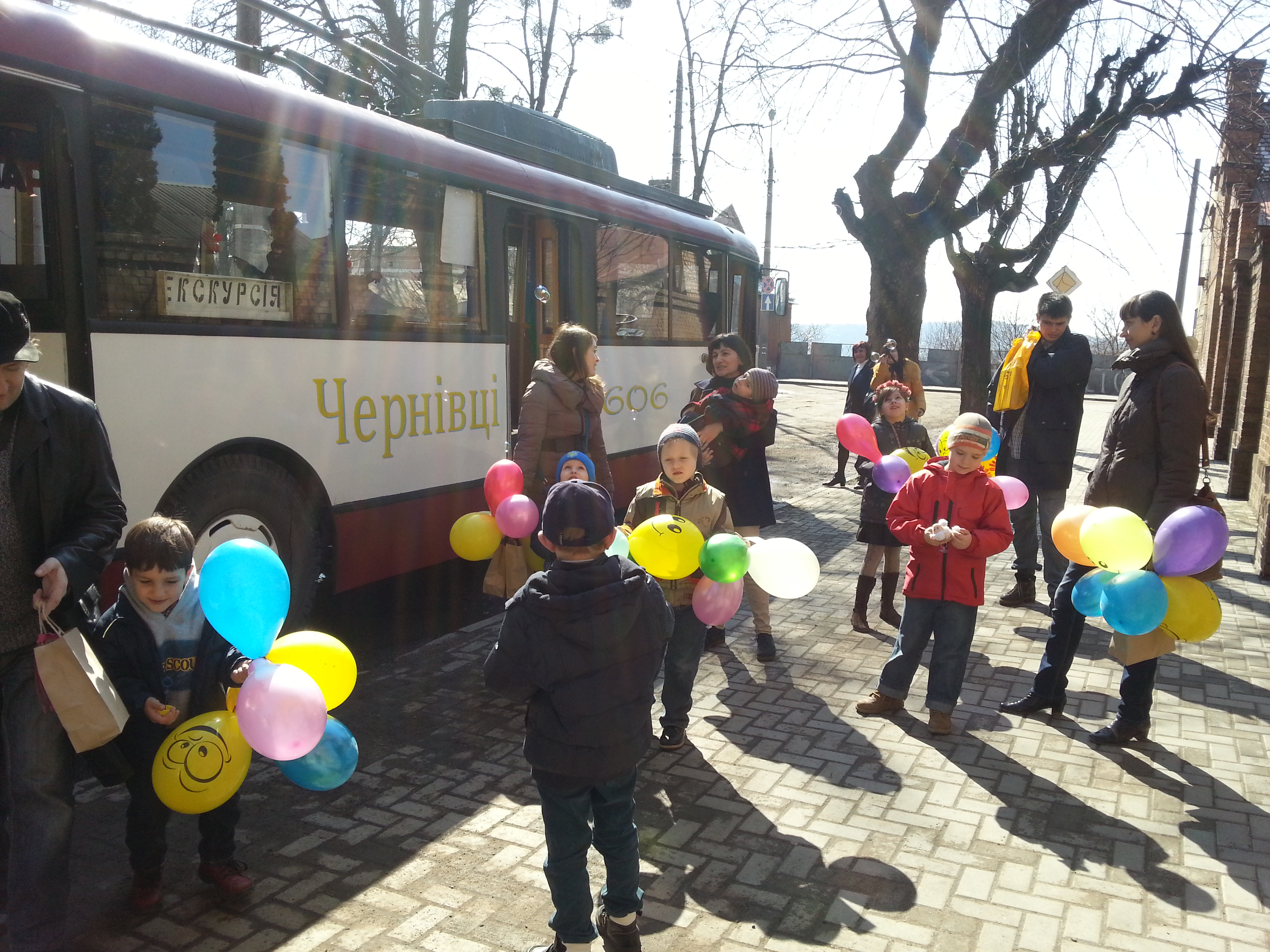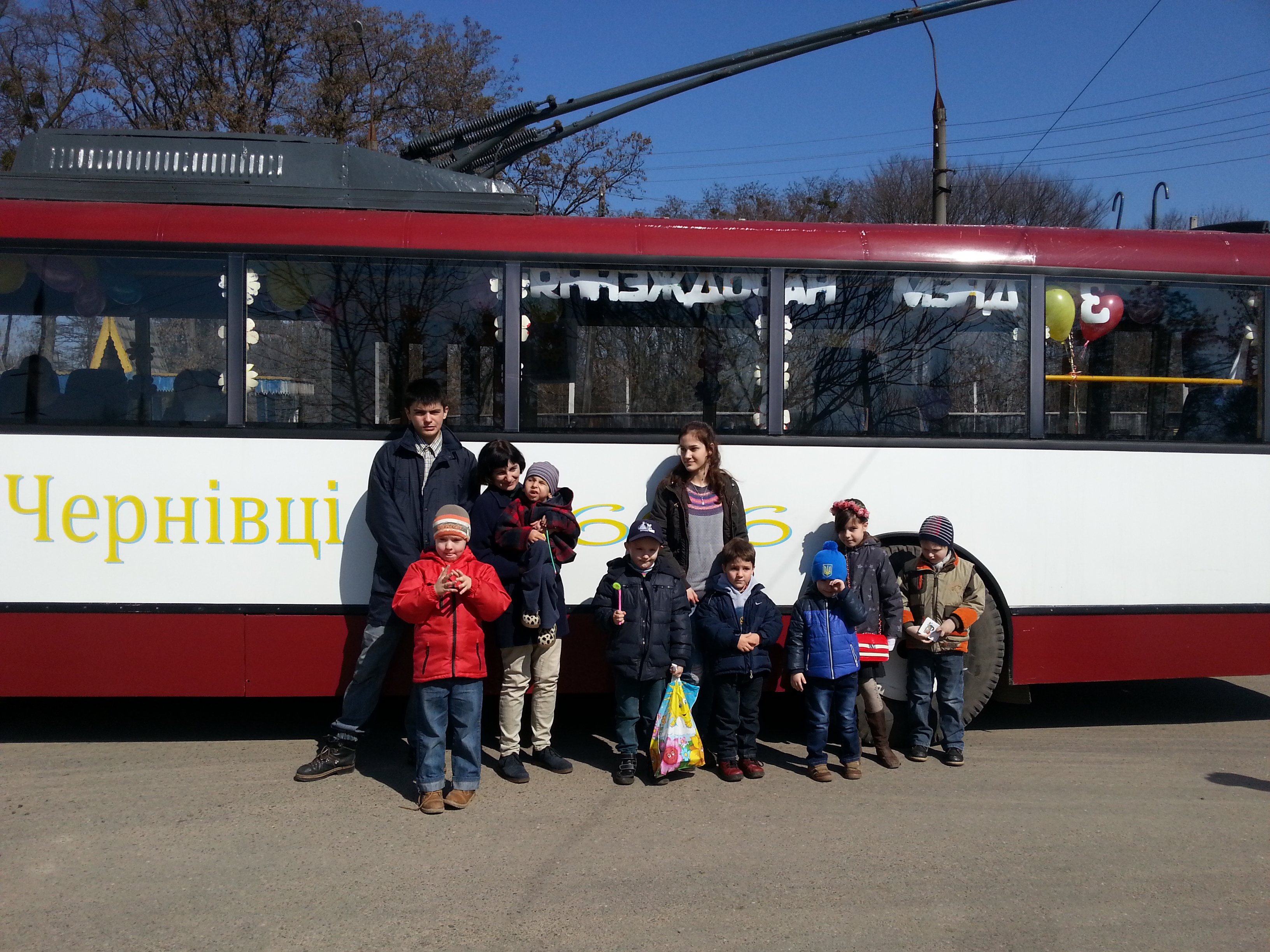 Дітлахи разом з іменинником проїхали містом від Резиденції митрополитів (університету) до музею просто неба, там зробили зупинку, вручили подарунки і сфотографувалися поруч із «тролейбусом бажань». А потім, знову під супровід розважальної програми і щирого «Хеппі бьоздей» повернулися до університету.