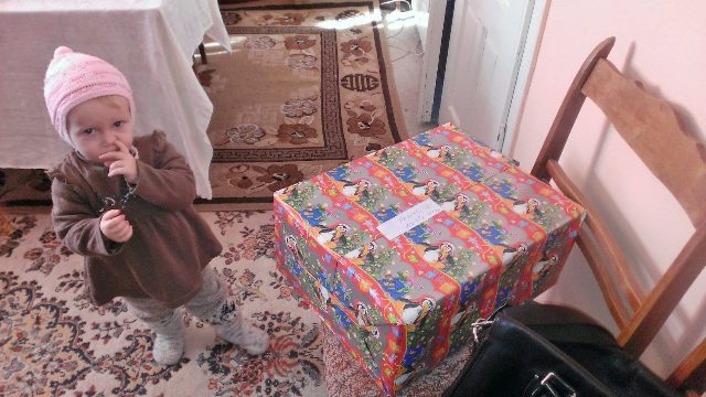 В кінці грудня 2014-го пані Галина приїхала на свята і привезла крім речей для солдатів, також подарунки для дітей вдів та невеличку фінансову допомогу, яку громада “Євромайдану”, яку збирала практично по цілому світі.