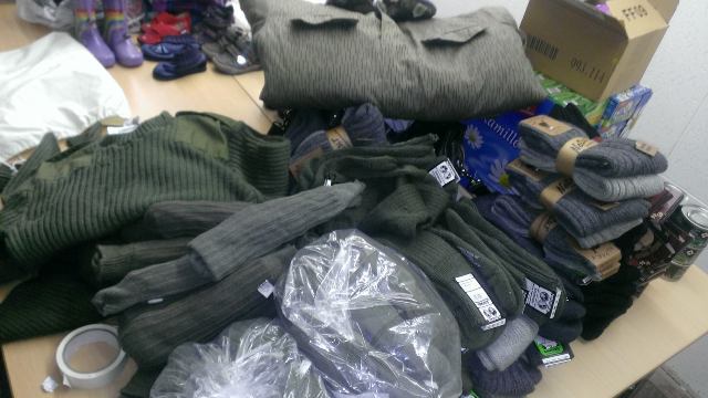 2) приблизно 40 коробок з одягом для дітей, вдів та бійців.